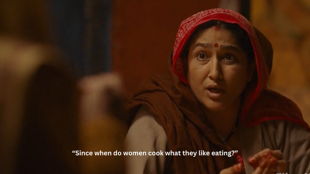 A very simple scene, yet so powerful and something that we are sure many would agree, happens many times in all our households no matter what class or society we belong to. When Deepak’s mother says how she gave up making a dish that she likes because her husband and son do not like it. And when Jaya says she can cook it because she likes it, Deepak’s mother replies – toh ab kya aurton ki pasand ka khana banega?