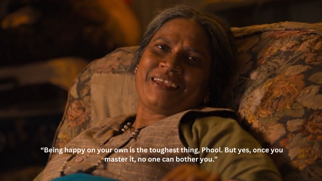 When Phool asks Manju Mai if she doesn’t feel scared to stay alone, she says – “Being happy on your own is the toughest thing, Phool. But yes, once you master it, no one can bother you.”